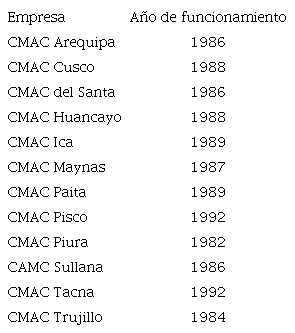Las CMAC nacen bajo el modelo de las cajas de ahorro de Alemania. Portocarrero (2000) manifestó que las CMAC han sabido ganarse sigilosamente al microempresario generando en ellos la confianza por la estabilidad y solidez de estas instituciones que contribuyen a la proyección de una imagen perfecta de solvencia en el sistema financiero. Esta confianza ganada en el sistema financiero ha hecho que las CMAC hayan crecido de una manera sostenida tanto en las colocaciones como en la captación de ahorros, lo cual las constituye como entidades líderes en el sistema microfinanciero peruano.