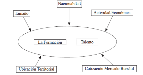 económica; nacionalidad; ubicación geográfica; tamaño y cotización en bolsa. Las