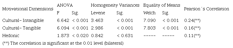 H1: The visitors in certain destinations have, besides a cultural motivation, other types of motivation of a social or psychological nature that impact their tourist behaviour.