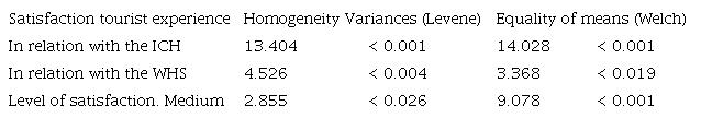 H5: The complementarity of the ICH and WHS in a tourism destination results in higher levels of satisfaction of the tourism experience.
