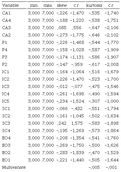 Based on the output of data processing with Amos shown in Table 3, it can be concluded that there is a distribution of data fulfilling the assumptions of normality both univariate normality and multivariate normality. This can be seen from the coefficient c.r skewness and kurtosis have value lower than ± 2.58 (Z =0,05/2).