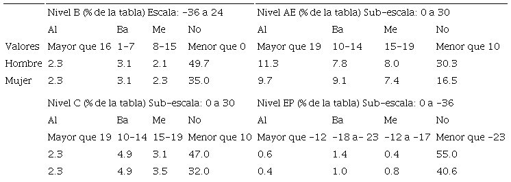 En relación a otros estudios se tiene que en Colombia con una muestra de 872 contadores públicos de 86 ciudades, se encontró que 54.8% presentan un nivel alto de burnout (Loaiza y Peña, 2013) en Estados Unidos y con 1 681 auditores, contadores y consultores en temas fiscales se encontró que experimentan agotamiento emocional en niveles similares, pero son las mujeres las que reportan niveles más bajos de eficacia profesional y son los hombres los que presentan mayores niveles de despersonalización/ cinismo ( Jones III, Guthrie y Iyer, 2012; Guthrie y Jones III, 2012) al comparar a los contadores con otros colectivos profesionales Fogarty, Singh, Rhoads y Moore (2000) encontraron que los valores medios reportados en agotamiento emocional son mayores a los experimentados por maestros y enfermeras, para la despersonalización los valores son similares a los residentes médicos; la eficacia profesional es más baja en relación a los abogados. Las mujeres auditoras mexicanas son el género que sensiblemente ostenta los mayores niveles del síndrome, lo que se observa con una pequeña diferencia al comparar el valor medio que supera escasamente al de los hombres, esto refuerza los resultados de Maslach, Jackson y Leiter (1996), Cámara y Cuesta (2005) y Boydak (2009) en sus estudios. En cuanto a las dimensiones agotamiento emocional y cinismo, son las mujeres auditoras quienes presentan los valores medios mayores respecto de los hombres, aunque ambos presentan niveles bajos de burnout, no obstante, esto indica que las auditoras perciben un mayor agotamiento emocional y cinismo que los hombres coincidiendo con la explicación de condicionamiento de género de Oramas et al., (2007).
