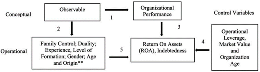 Concerning the statistical analysis, no significant relationships were found between three of the seven raised hypotheses and organizational performance. These are the age, gender, and origin of CEOs. These implications differ from most of the results presented by the UEP literature, which has established a positive or negative relationship between these characteristics and the performance of companies. Family control, experience and training were negatively related. Only duality had a positive relationship with organizational performance.