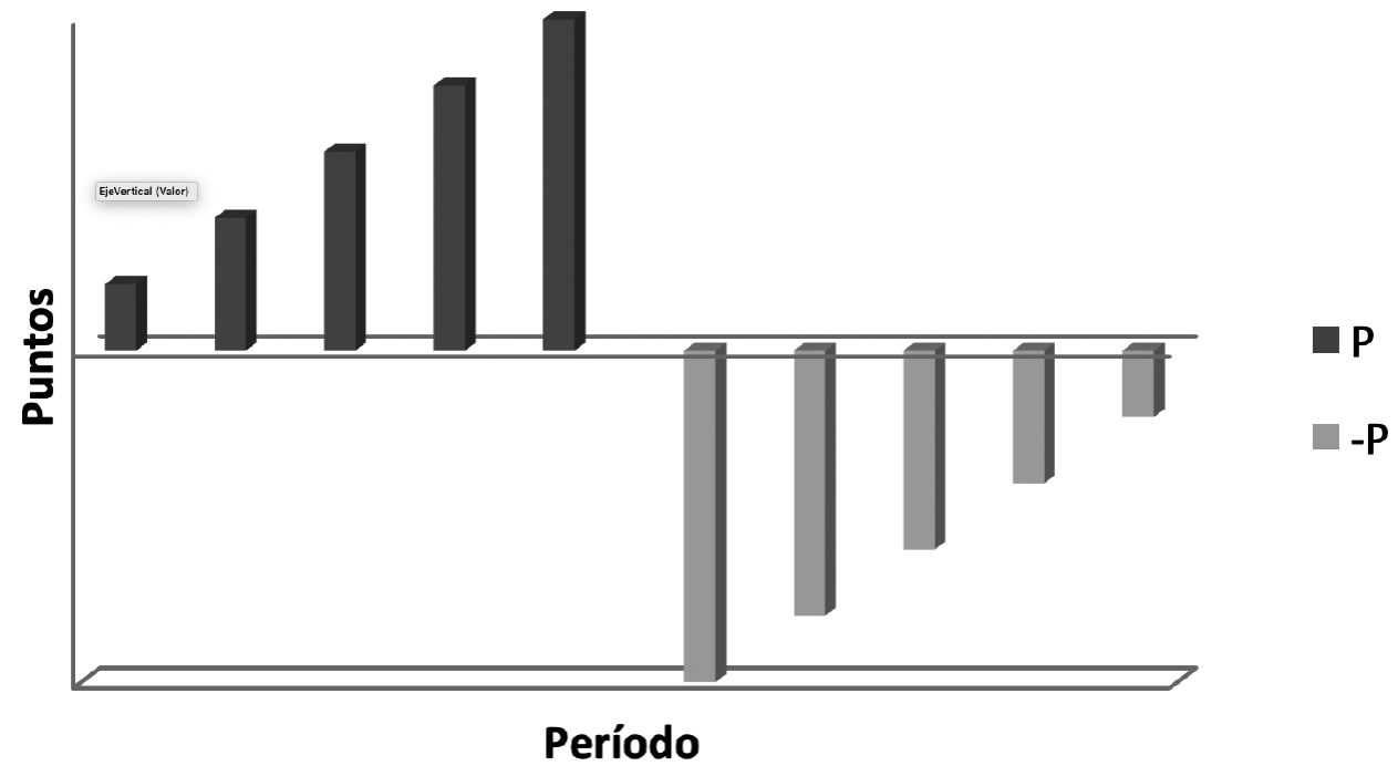 2. Ahorro simultáneo al préstamo o post-ahorro. Los puntos de ahorro negativos generados por el préstamo son cubiertos por puntos de ahorro positivos devengados mediante el ahorro realizado en el período de vida del préstamo. Se ilustra en la Figura 2.