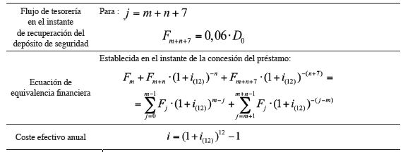 Para determinar el coste real del préstamo es necesario determinar los flujos de tesorería (cobros y pagos) generados en cada instante del tiempo (véase el desarrollo analítico subsi-guiente en la Tabla 6):