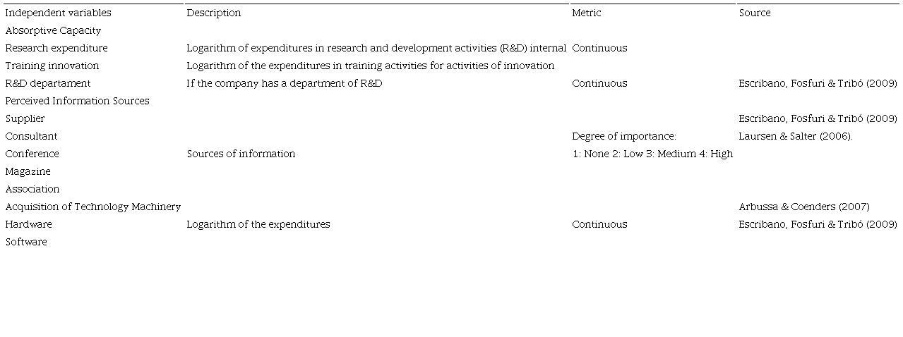 Our results also have implication for managers by using the results to develop their own innovation capacity. They may apply the three variables used here. In terms of the development of absorptive capacity, managers can consider, to increase a company’s capacity, increase training costs to improve skills and knowledge of the workforce to identify or propose innovations in processes and products. Managers should be considering also spend time and resources strengthening research and technological development activities as well as considering the company´s absorptive capacity to get more benefits from external and internal information sources. Finally, managers should encourage machinery and equipment acquisitions if they wish to improve the company’s technological innovation.