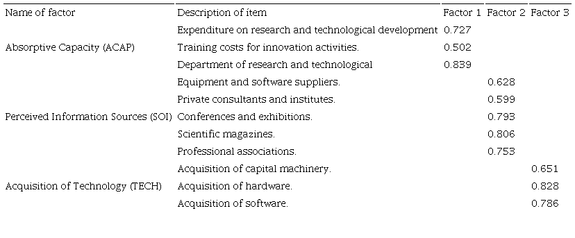 The third and last hypothesis 3, where the association between the expenditure in acquisition of machinery, hardware and software and the technological innovation of the companies, was also confirmed. This finding should further firm to acquire technologies, through means such as the purchasing of embedded technology that improves the innovative diversity of the company (Huang, Arundel & Hollanders, 2011) and thus contributes to improving the company performance. These results are in accordance with the research of Santamaría et al. (2009) and also by Heidenreich, (2009), whofound that low and medium-low technological companies develop better innovations through the acquisition of machinery, equipment and software