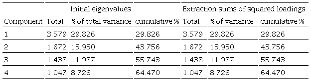 Afterwards, we build a composite indicator of ICT use by using the factors obtained through the extraction method. Table 2 reports the first four factors which explain nearly 65 percent of the variance.