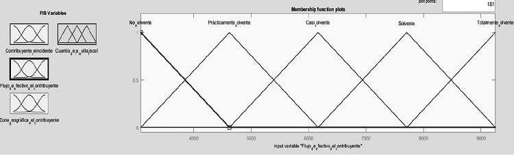 Se delimitarán las variables de salida del sistema, sobre la base de ellas se estructuran las variables de entrada. Es decir, las salidas están vinculadas directamente por el planteamiento de las funciones del mecanismo. Así, la variable de salida del sistema es la "Cuantía de la Multa Fiscal", como resultado de las sanciones de tipo económico, previstas legalmente en el Código Fiscal de la Federación, impuestas a los contribuyentes activos de una infracción fiscal. Por lo que se refiere a las variables de entrada al sistema, se tiene el agravante de "Con tribuyente reincidente" de acuerdo con el mismo ordenamiento legal. Sin embargo, el producto de una multa fiscal deberá ser atenuado, como proposición de este trabajo, por dos variables de entrada. Particularmente, "Flujo de efectivo del contribuyente", como atenuante principal debido a que la Ley del Impuesto Sobre la Renta otorga facilidades a los contribuyentes para pagar los impuestos mediante un procedimiento de flujo de efectivo, dado que se trata de un elemento esencial para la existencia de las empresas porque indica la capacidad para pagar sus deudas, sobre todo las de corto plazo. Además, un indicador que supera la efectividad de otros estados financieros, concreto, el estado de cambios en la situación financiera porque con dicho formato puede ser engañoso. Esto es, una organización consigue no presentar cambios en su efectivo dado que todo el excedente se invirtió en valores realizables. Sin embargo, esa entidad ha mejorado notablemente su situación de flujo de efectivo no obstante de que el saldo de efectivo permanece invariable (Vargas, 2007; Loscalzo, 1992).