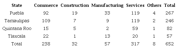The present study is descriptive, exploratory, and causal, realized through a cross-sectional analysis with a sample of 652 family business. We consider a company as a family business when the same or related families own more than 50% of property, and at least one member of these is a member of the top management team. We can observe in the table 1 the distribution of the sample was used. This is a stratified sample considering four Mexican states, Puebla, Tamaulipas, Tlaxcala, and Quintana Roo. In each one of the strata, the selection was done across a random process. We collected this sample from the 2016 Directorio Estadístico Nacional de Unidades Económicas (DENUE) of the Instituto Nacional de Estadística y Geografía (INEGI) in Mexico.