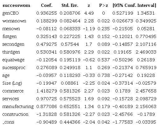 We run the logit regression model to analyze the effect of variables related to the succession process and their impact on the decision that successor will be a woman. Table 3 show the results of the regression.