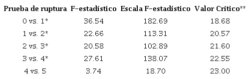 esta hipótesis elaboramos un modelo de regresión con rupturas para calcular el