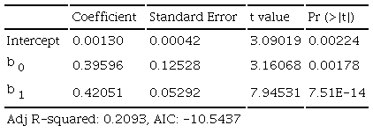 In this specification, all coefficients are found to be significant and the standard error has a level consistent with the coefficients see Table 1.