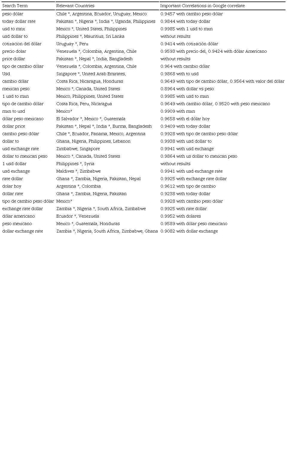 We have also ensured that the correlations calculated by the Google Correlate tool see (Google, 2017a) are consistent with keywords related to the exchange rate and not with other Internet search terms.