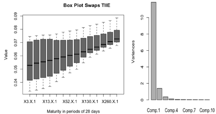 Figure 4 shows the range of the fixed interest rates of the TIIE 28-day swaps during the period and their principal components.