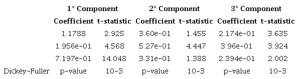For each of the components the stationarity was tested through the assumptions, with 99% Dickey-Fuller test confidence.