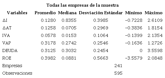 La Tabla 3 retrata la composición cuantitativa y las estadísticas descriptivas de las variables contables calculadas para las empresas de la muestra.