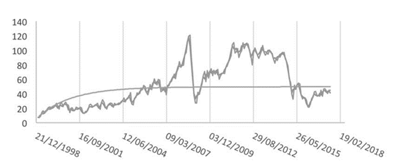 Este trabajo se inscribe en la segunda vertiente y tiene como objetivo mostrar que la serie de precios de petróleo de la modalidad Maya en México exhibe reversión a la media en el largo plazo. Es decir, que las volatilidades son tales que violan significativamente los límites de la ecuación (5) y, por tanto, permiten asociarle a los precios del crudo un patrón de comportamiento pronosticable en el corto plazo. Los resultados obtenidos con la simulación del modelo y la prueba de Andrews sobre estacionariedad revelan que la reversión a la media de las series de precios comprendidas entre 1999 y 2017 es persistente y sin cambios permanentes en sus tendencias.