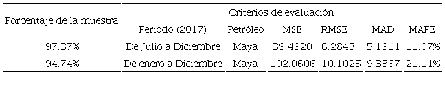 El análisis estadístico se concentra en la modalidad del crudo Maya y en el mercado Americano por ser el producto y la región que mayor importancia tienen en las exportaciones mexicanas de crudo al exterior (80.29 %). No obstante que la proporción de ese mercado ha ido disminuyendo significativamente en las ventas mexicanas de crudo (al pasar del 81.2 por ciento en 1999 al 52% en 2017) su importancia en el periodo de estudio es mayor que la de cualquier otra modalidad, por lo que las conclusiones aquí obtenidas no pierden generalidad.