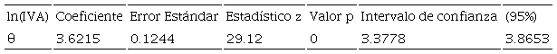 En la Tabla 3 se muestra la estimación del parámetro θ que corresponde a la transformación de la variable dependiente . El estimador de θ es significativo a un nivel de confianza superior al 95%.