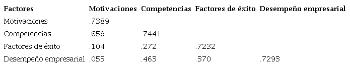Los hallazgos alcanzados dan evidencia de una relación significativa entre las motivaciones, las competencias; así también los factores de éxito para el emprendimiento con el desempeño empresarial. Se prueba que las competencias para emprender influyen en las motivaciones para iniciar una empresa, H1. En este sentido, los resultados son coincidentes a los de Fenton y Barry, (2014); Iglesias et al., (2016); Lee et al., (2005) en lo que se refiere al reconocimiento de la importancia de las competencias en la predisposición a emprender y la promoción de su desarrollo. Esto hace suponer, que a mayor formación y exposición a entornos de emprendimiento, más fortalezas tendrá la persona que emprende y mayor probabilidad habrá de qué considere el independizarse y emprenda exitosamente. De ahí, que la formación para el emprendimiento, debiera configurarse para empoderar al potencial emprendedor, reforzar la percepción sobre de sus propias capacidades; enfatizar los aspectos que facilitan la actividad emprendedora y sortear aquellos que la obstaculizan.