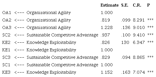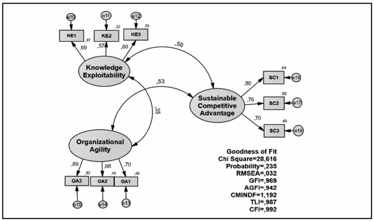 Knowledge exploitability significantly affects the sustainable competitive advantage. This means that the quality of communication, organizational management, information, and communication technology can directly increase the sustainable competitive advantage (have unique products, durability, and have different strategic assets from competitors). The result of this study supports the previous research conducted by Ivory & Brooks (2018) which states that the specific organizational practices and processes associated with the application of strategic agility can manage corporate sustainability with a paradoxical lens. This finding also supports the assertion that agility will be able to improve market performance when decision-makers have market skills, experience, and learning orientation (Nemkova, 2017).