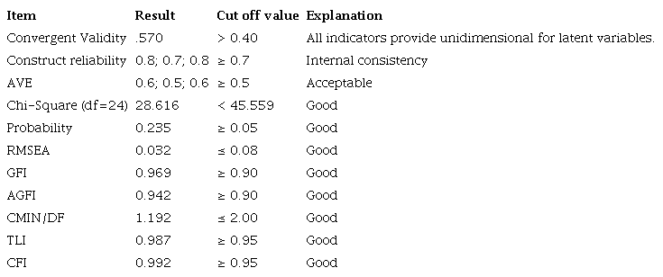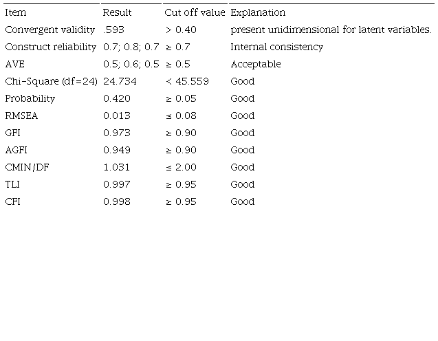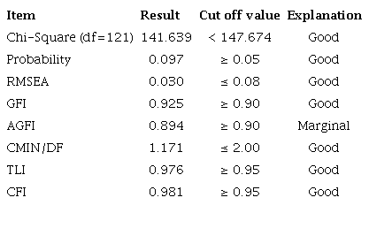Table 4 indicates that each indicator or dimension of each latent variable has a high significance. It can be concluded that the indicators forming latent variables are good indicators or dimensions to measure each of the latent variables.