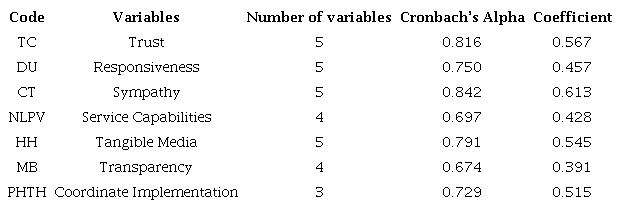 Scale of satisfaction of exporters and importers on the quality of electronic tax payment service at HCMC Customs Department. HCM consists of 7 factors with 34 variables of observation. The results of the Cronbach’s alpha coefficient calibrated in Table 3 show that all scales have Cronbach’s alpha reliability (greater than 0.6 or 0.7), and the correlation coefficient is greater than 0.3 (Griethuijsen et al., 2014).