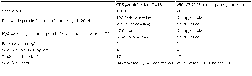 CENACE, 2018: Participantes del Mercado con Contrato (market participants with contract), Dec. 2018, accessed on March 25, 2019.