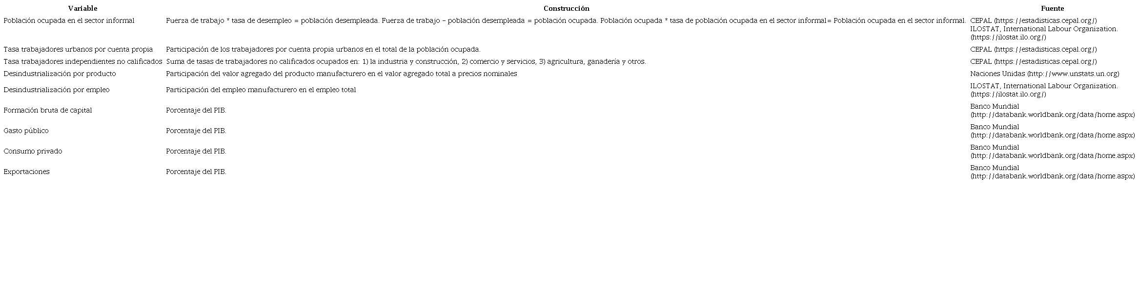 En esta sección, presentamos un ejercicio empírico con el fin de corroborar la argumentación teórica de la sección precedente. Es decir, intentamos mostrar que la desindustrialización prematura es causante del empleo informal. Al sustentar empíricamente nuestra hipótesis, es posible sugerir con mayor fundamento políticas que resuelvan el empleo informal