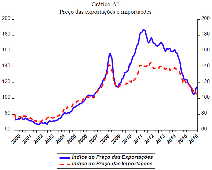 A crise financeira global que iniciou-se em 2007 nos Estados Unidos afetou severamente o mecanismo de transmissão e negativamente o fluxo de comércio internacional. A resposta do Federal Reserve (FED, Banco Central dos Estados Unidos) foi adotar uma política monetária alternativa, o quantitative easing. Estes foram programas de compra de ativos realizados pelo FED em larga escala, junto aos bancos, com o objetivo de elevação da base monetária. A crise financeira global que iniciou-se nos EUA, atingiu com maior severidade as demais economias mundiais a partir do segundo semestre de 2008, (Feenstra et al., 2012). Nesse contexto, é importante destacar as alterações que ocorreram nos preços das importações e das exportações, conforme apresentado no Gráfico A1 do Anexo A.