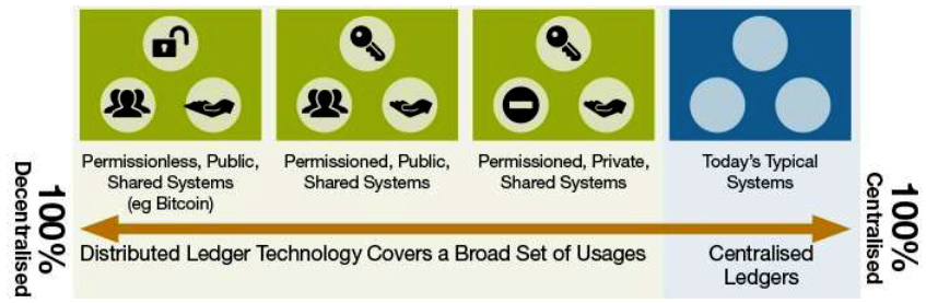 Given the characteristics of DLT systems, these innovations hold great potential for transforming current payment systems. The most well-known application are the cryptocurrencies. As mentioned, DLT systems operate as “multiparty consensus machines” and present substantial differences. More precisely, DLT systems can vary depending on the degree of decentralization, to a large extent, but not exhaustively: public permissionless shared systems, public permissioned shared systems, and private permissioned shared systems (Figure 2).