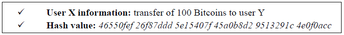 As a result, encrypted transactions can be exemplified as follows: user X wants to send user Y a message anonymously. To do so, user X uses encryption that transforms information to be sent in an alphanumeric sequence, or hash value, whose function is to hide its identity, as illustrated in Figure 3. In order to receive the message, user Y needs to decode this encrypted sequence, transforming it into the original information (Lee, 2015).