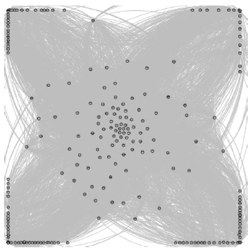 modularidade - mensura a densidade das conexões existentes dentro das comunidades em comparação com as ligações existentes entre as comunidades4.
