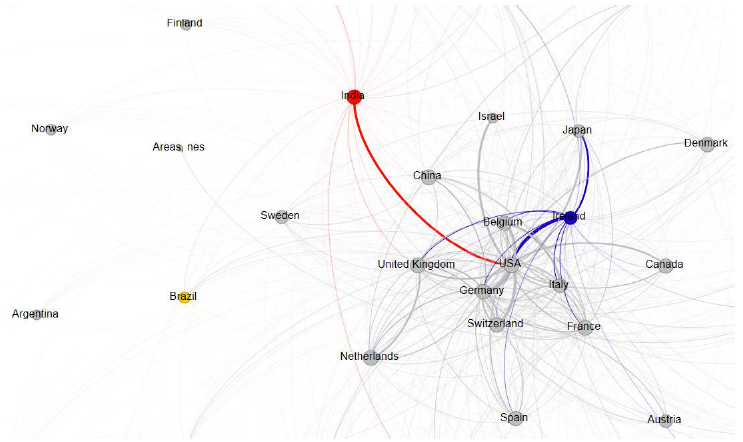 5 A posição do Brasil, Irlanda e Índia na rede de comércio de medicamentos