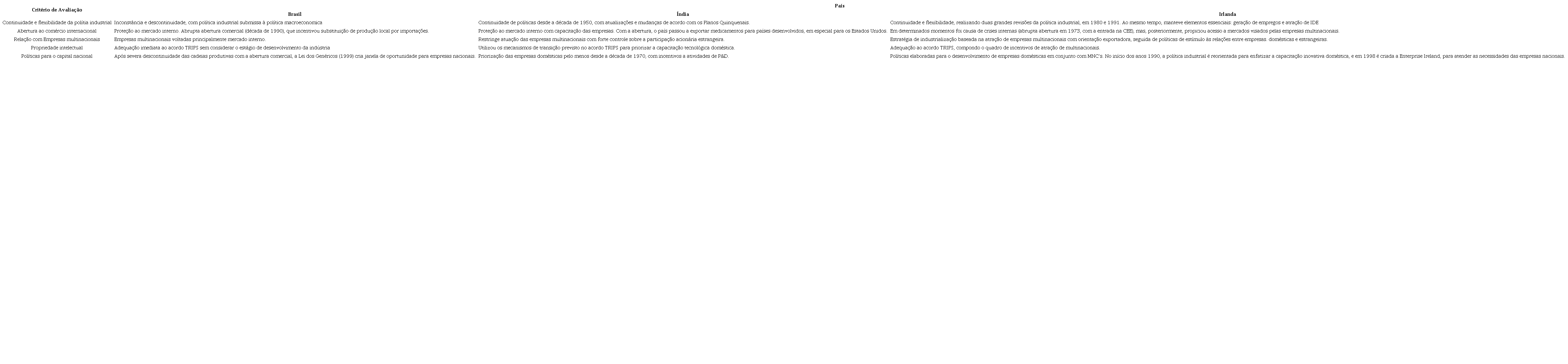 Desse modo, a avaliação dos desempenhos nacionais não deveria se limitar à análise das firmas individuais, mas considerar a influência dos ambientes institucional, econômico e de negócios criados pela interação das políticas nacionais com o ambiente regulatório estabelecido a nível internacional, por organizações, acordos e tratados realizados pelas nações e por instituições supranacionais.