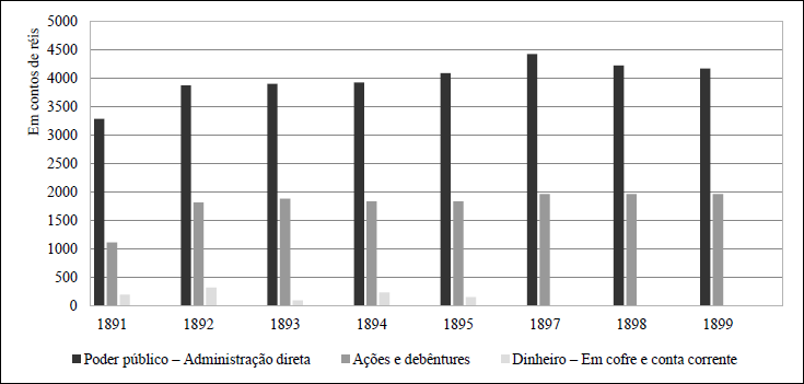 O restante do fundo, na década anterior aplicado unicamente em ações do Banco do Brasil, a partir dos últimos anos da década de 1880 e ao longo de toda a seguinte, foi dividido entre ações do Banco da República e do Banco do Comércio do Rio de Janeiro, e debêntures da Estrada de Ferro Leopoldina. O volume em dinheiro e contas correntes, que passou a contar com conta corrente no Banco do Comércio, apresentou nesse período uma participação mais volumosa e constante. Certamente, a maior demanda de saques e os referidos empréstimos feitos para garantir o atendimento das solicitações de retirada explicam o aumento de participação desse ativo.