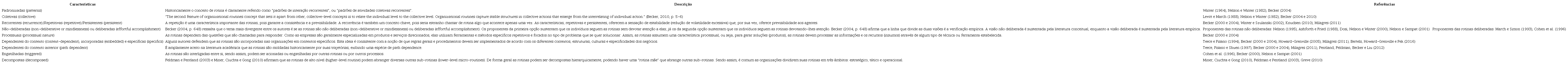 Além das definições listadas acima, cabe ressaltar que, de acordo com a revisão de literatura, as rotinas possuem algumas características, conforme ilustrado no Quadro 1.