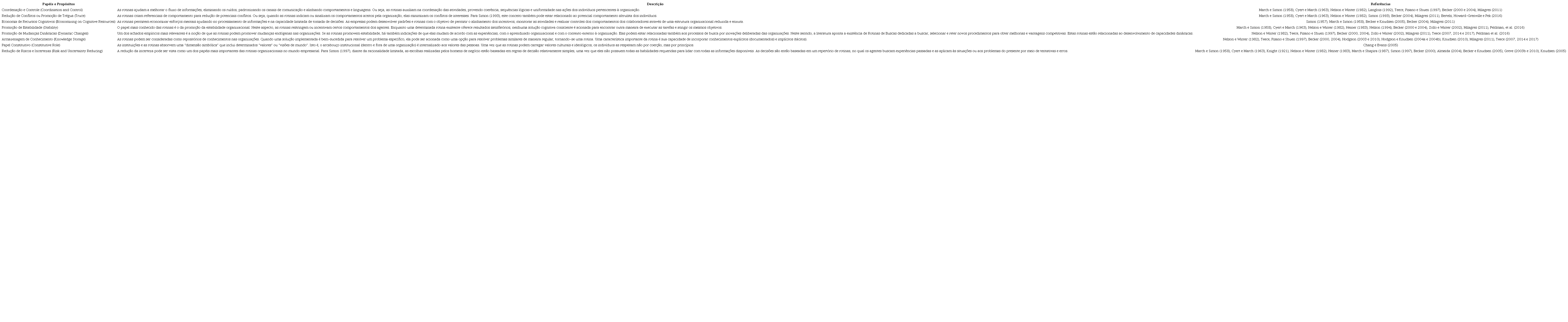 Embora se tenha feito um apanhado mais amplo dos papéis e propósitos das rotinas organizacionais no que tange ao tema do artigo em questão, cabe destacar as seguintes: coordenação, controle e redução de riscos e incertezas.
