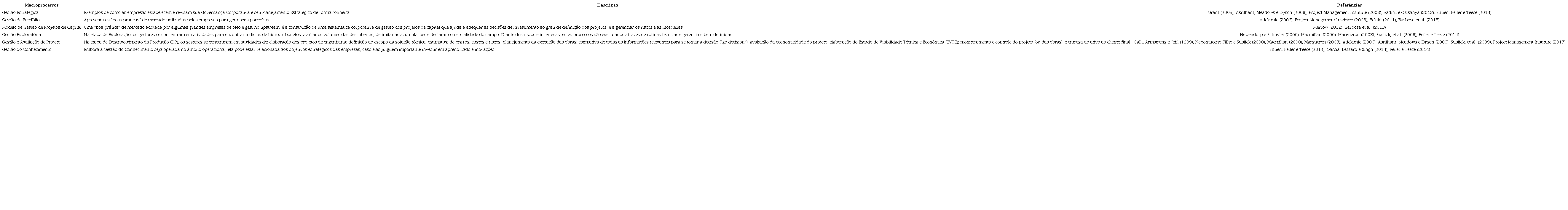 Alinhado ao MTDI-E&P, através de uma revisão de estudos empíricos, foi possível demonstrar a aplicação dos seis macroprocessos (higher-level routines) técnicos e gerenciais que impactam as decisões e investimentos, tal como ilustra o Quadro 4.