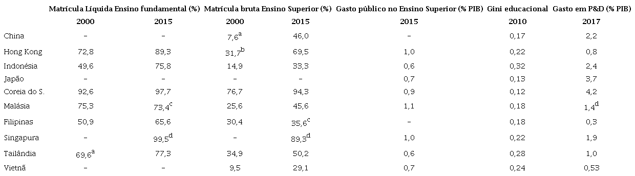 De um modo geral, todos os países expandiram a cobertura no ensino superior, sobretudo nos NICs e de forma bastante acelerada na China; mas é na Coreia do Sul que tal tendência se destaca, de modo a atingir a maior proporção de matrículas nesse nível de ensino da região. Welch (2017) sublinha que a maior parte das universidades no Leste Asiático são privadas, porém contam com subsídios públicos. Essa crescente importância do ensino superior se insere no processo de reformulação das políticas industriais na região, em meio à globalização.