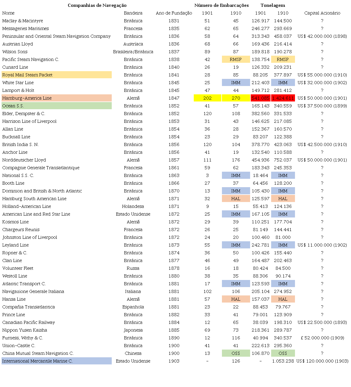 Foram necessárias algumas décadas para que a chamada “partilha do mundo” também significasse uma “partilha dos mares” (Lenin, 2013). Para tanto, a concentração de capitais, como está demonstrada na monta dos capitais distribuídos em ações e obrigações de algumas dessas empresas, somada a centralização da produção, evidenciada pela relação entre o ritmo de (de)crescimento das frotas frente ao exponencial crescimento das capacidades de carga, atuaram poderosamente confirmando a pulsão monopolista nos mares. Para tanto, se serviram de novos mecanismos, acelerando sua expansão/concentração numa forma - a Sociedade Anônima Gigante (Baran; Sweezy, 1966) - que contribuiu para alterar o conteúdo sistêmico: o capitalismo que era concorrencial passou a ser monopolista.