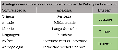 Que analogias podemos sugerir na estratégia contradiscursiva de Polanyi e de Francisco? Vejamos: