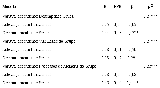 Liderança transformacional, comportamentos de suporte e eficácia grupal
