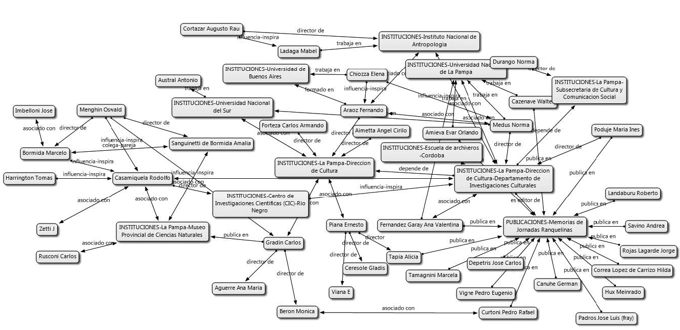 La imagen que presentamos a continuación grafica algunas de las relaciones tejidas entre investigadores y organismos provinciales a lo largo de los años repasados en este texto.