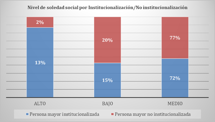 La Figura 1 evidencia la asociación moderada entre el nivel de soledad social y la institucionalización o no de la persona mayor.