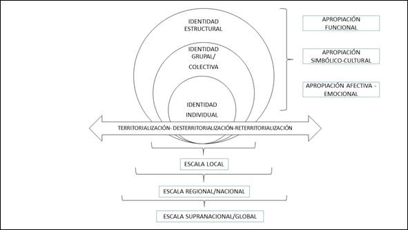 En antropología, el espacio ha sido concebido como parte de los esquemas que organizan la cultura (Bello, 2011); desde Boas en adelante, la tradición cultural funcionalista norteamericana circunscribió la cultura como un todo interdependiente, diferenciado y situado geográficamente. Desde el materialismo cultural se correlacionaron las condiciones físicas, el medio ambiente con el desarrollo de patrones de comportamiento de los grupos culturales (Harris, 1985). El estructuralismo de Levi-Strauss (1964) asoció las características materiales y elementos espaciales donde se localizaban las sociedades primitivas con categorías lingüísticas y de pensamiento. Es decir, desde estos enfoques si bien se reconoce la relación espacio-cultura e identidad; esta relación estaba dada por factores «objetivos» de la realidad que operaban de manera independiente de la voluntad de los sujetos que los experimentaban. En tanto cultura, identidad y espacio eran extrapolables a variables propias de un análisis postpositivista.