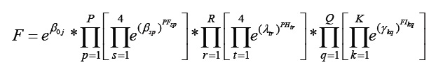(1)where F is the OR of the frequency of WRMD symptoms; j is the frequency of pain (j=1, ‘no pain’; j=2, ‘occasional pain’; j=3, ‘frequent pain’; and j=4, ‘everyday pain’);