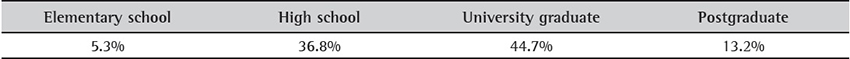 According to Table 2, the owners who participated in the study have high level of education; this characteristic converges with the results obtained by Sebrae (Serviço Brasileiro de Apoio às Micro e Pequenas Empresas, 2015), who verified a significant increase in the education level of Brazilian entrepreneurs of small businesses. Bonafede et al. (2016) found that in Italy, most employers of small enterprises had a low level of education; this situation makes it difficult to implement OHSMS. Olsen & Hasle (2015) pointed out that low education level is a barrier to participation of awareness actions on OHS.
