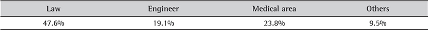 The external stakeholders of the companies have an average of 8 years of experience, and the area of expertise of these professionals was quite varied (Table 4). The diferences in the areas of their study are due to the multidisciplinary characteristics of Brazilian labor inspection. The unique characteristic on this country should be studied to obtain better conclusions about its effects.